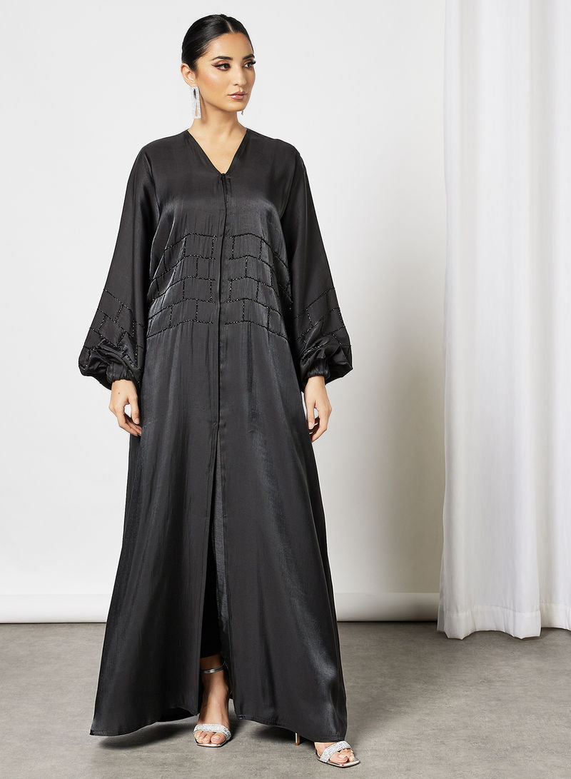 - Detailed work with beads enhances the look of this beautiful abaya.